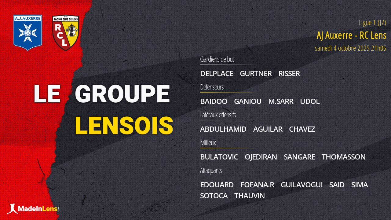 Voici le groupe de 21 joueurs sélectionnés par Pierre Sage pour le match AJ Auxerre - RC Lens prévu samedi.
